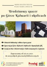 Szczegóły na stronie : https://biblioteka.gorakalwaria.pl/urodzinowy-spacer-po-gorze-kalwarii-i-okolicach/