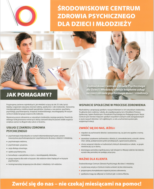 Środowiskowe Centrum Zdrowia Psychicznego świadczy bezpłatną pomoc psychologiczną i psychoterapeutyczną dzieciom i młodzieży z powiatu piaseczyńskiego.