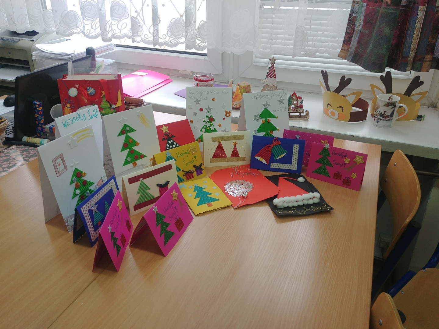 Dziękujemy wszystkim uczniom, rodzicom, nauczycielom i pozostałym pracownikom szkoły za tak duże zaangażowanie się w akcję „Podziel się Świętami z naszymi Mieszkańcami” organizowaną przez pracowników Domu Pomocy Społecznej w Górze Kalwarii. 17 grudnia zawieźliśmy kilka pudeł po brzegi wypełnionych różnymi najbardziej potrzebnymi Pensjonariuszom rzeczami. Przekazaliśmy również kilkadziesiąt kart z życzeniami. Mamy nadzieję, że ten drobny gest pomoże obdarowanym osobom przeżyć nadchodzące Święta w lepszym nastroju