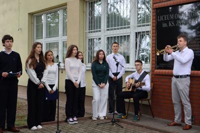 16 września 2025 r. uczniowie I klas LO Ks. Sajny złożyli uroczyste ślubowanie, poprzez które przyjęci zostali oficjalnie do społeczności szkolnej. Tego dnia wspominaliśmy męczeńską śmierć Patrona Szkoły- błogosławionego Ks. Zygmunta Sajny- proboszcza parafii Góra Kalwaria w czasie II wojny światowej. Uroczystość poprowadził pan dyrektor Tomasz Art. Obecni byli uczniowie nauczyciele, a także zaproszeni goście : burmistrz miasta i gminy Góra Kalwaria pan Arkadiusz Strzyżewski oraz dyrektor Zespołu Obsługi Placówek Oświatowych pan Bogdan Wrochna. Oprawę artystyczną przygotowała klasa IIa pod kierownictwem wychowawczyni pani Justyny Wysokińskiej i pani wicedyrektor Łucji Stępień. Część muzyczną przygotowała pani Beata Świderska. Wykonanie pieśni " Barka", śpiewanej przez młodzież uświetniła melodia grana na trąbce przez pana Piotra Połecia. Reprezentacja klas III godnie uczestniczyła w poczcie sztandarowym Liceum.