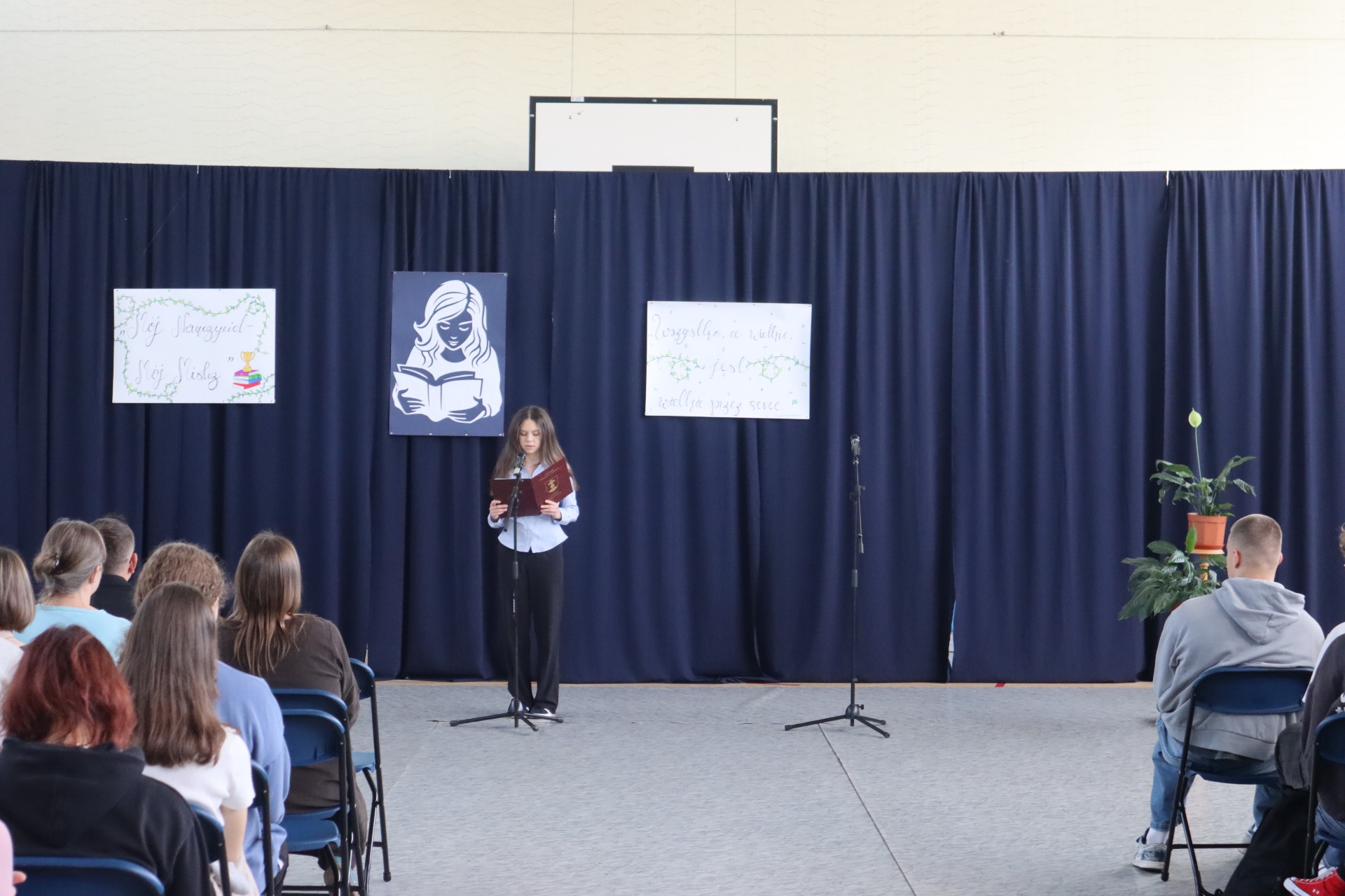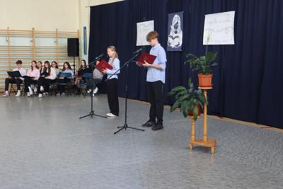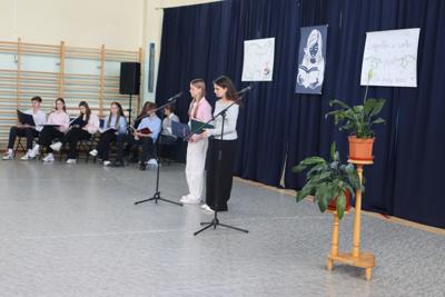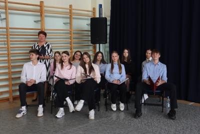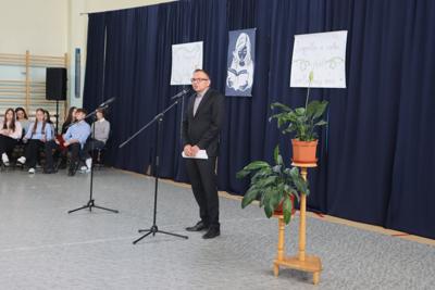 13 października świętowaliśmy Dzień Edukacji Narodowej. Uczniowie klasy 3b pod kierunkiem p. Edyty Jeleń przygotowali montaż słowno – muzyczny „Mój nauczyciel – mój mistrz”. w którym zwrócili uwagę na to, że trzeba rozmawiać o autorytecie i doceniać autorytety, z którymi spotykamy się w swoim życiu. Dzień Edukacji Narodowej to święto całej społeczności szkolnej, nauczycieli, uczniów i pracowników niepedagogicznych, co zaznaczył w swoim wystąpieniu Pan Dyrektor. Z uwagą wysłuchaliśmy również słów Przewodniczącej Samorządu Szkolnego – Aleksandry Motyki oraz Przewodniczącej Rady Rodziców - p. Renaty Parol.