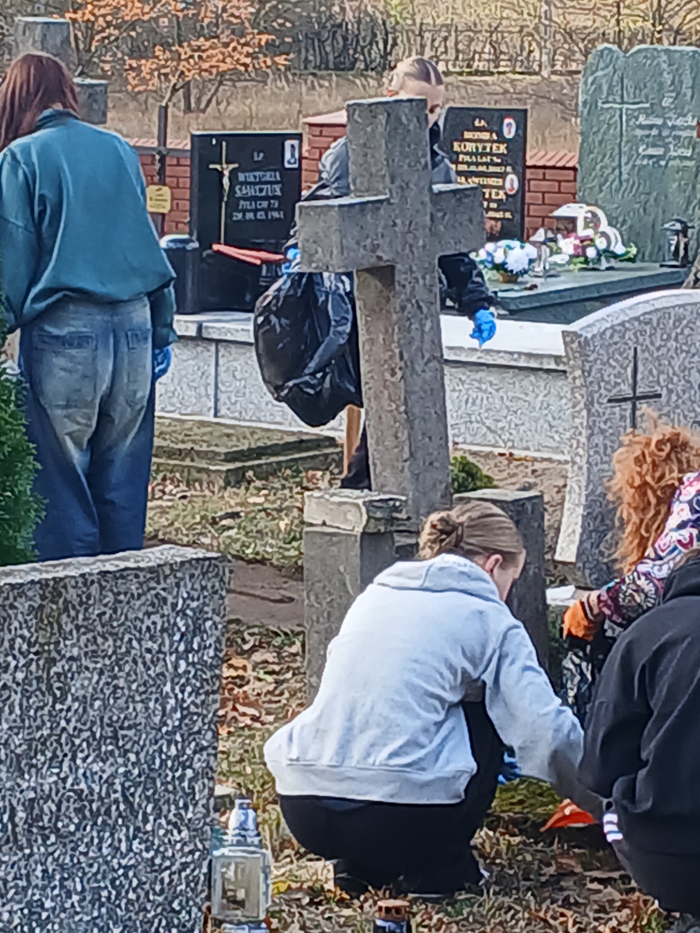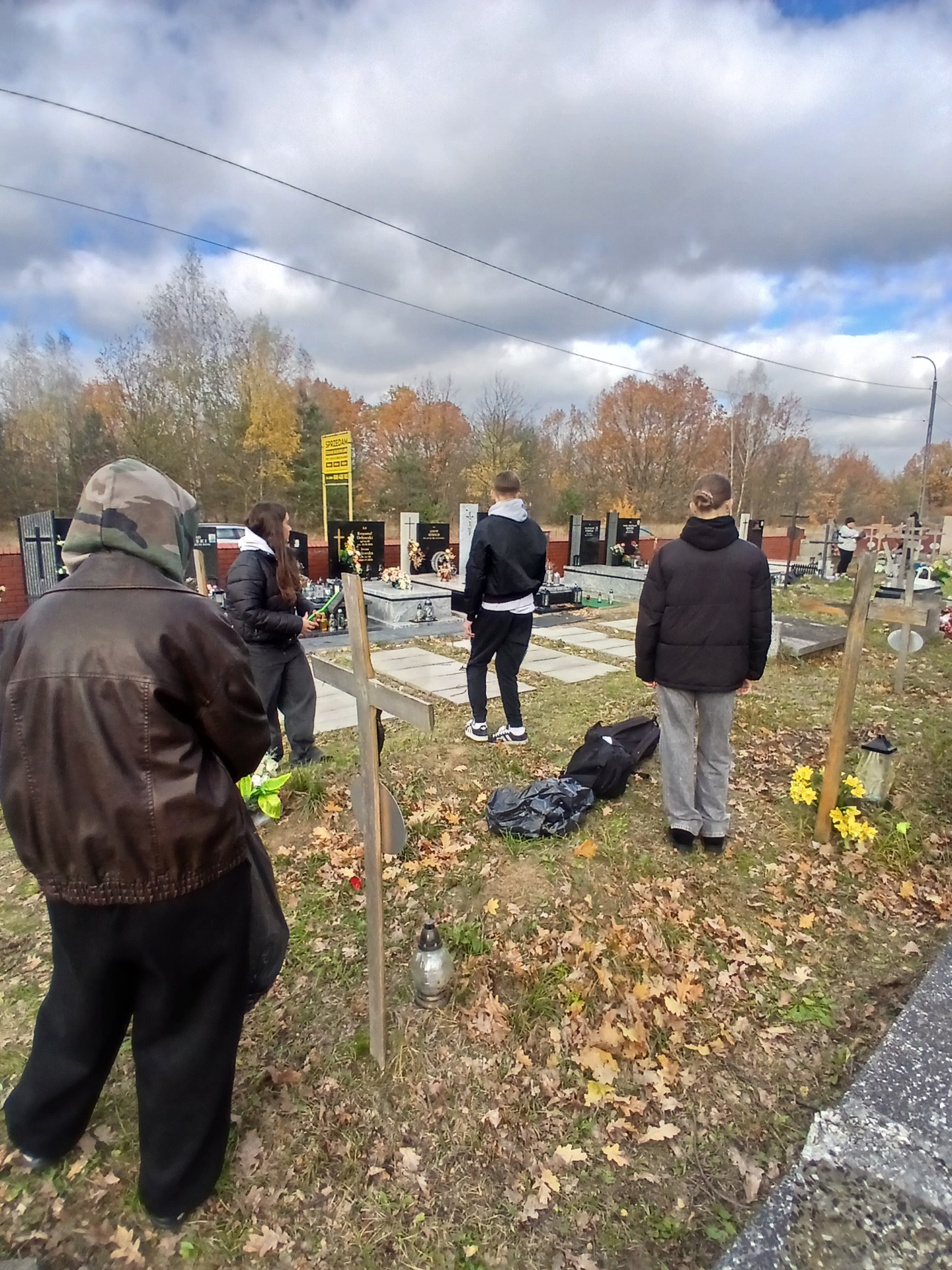 Społeczność uczniowska LO Ks. Sajny oraz Szkoły Podstawowej Nr 1 podtrzymuje pamięć o zmarłych. 31 października 2025 r. w przeddzień uroczystości Wszystkich Świętych wolontariusze LO a także przedstawiciele klasy 3b LO, wraz z panią Magdaleną Durką i panią Anetą Wrochną udali się na cmentarz parafialny, gdzie posprzątali zaniedbane groby. Wyrazem pamięci o tych, którzy odeszli., są też pozostawione przez nas na grobach znicze. Zawdzięczamy je głównie uczniom Szkoły Podstawowej, którzy przynieśli je w ramach akcji organizowanej przez panią Magdę Michalską.
